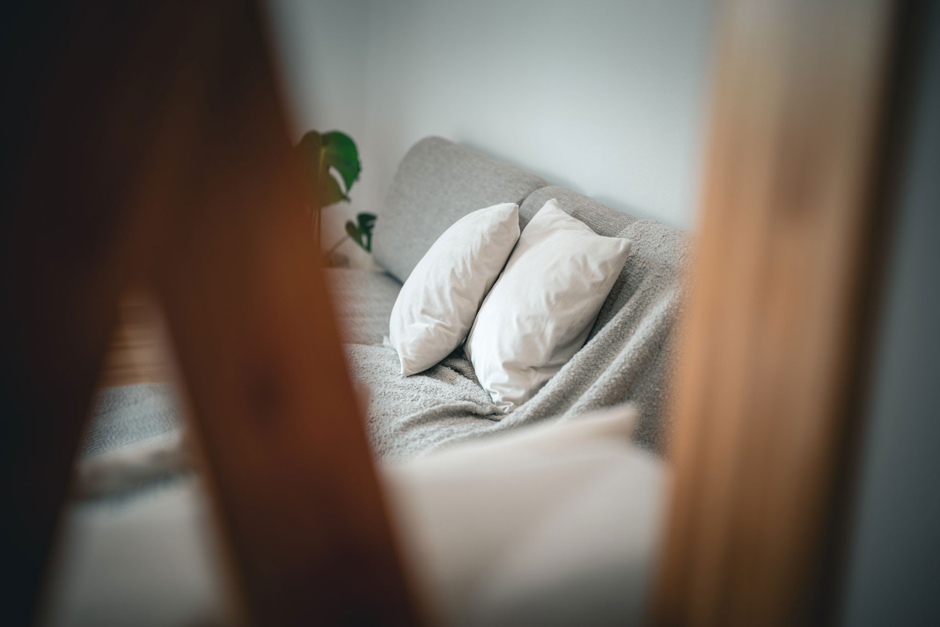 White walls and light wood floors create a clean, warm space that blends gently with the snowy landscape, with views of Mount Myoko from the lounge.